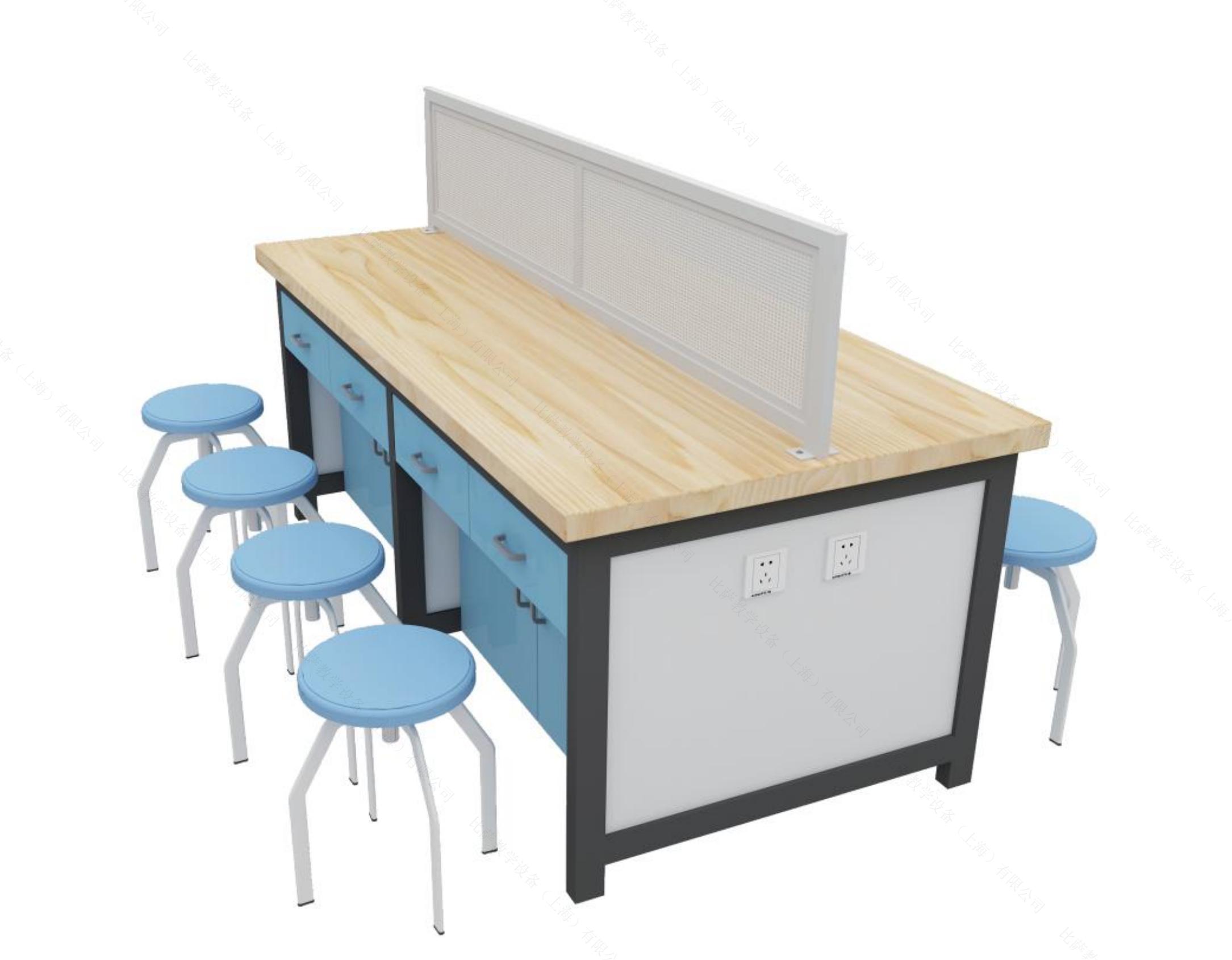 學生桌子使用對面做的模式,可便于拆卸擋板放置大型機械設備,方便學生使用。